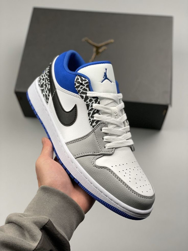 مدل Jordan 1 Low Cement Grey Racer Blue یکی از نسخههای پرطرفدار جردن وان لو است که با ترکیب رنگی سفید، خاکستری، آبی و مشکی عرضه شده. طرح فیل پرینت (Elephant Print) در قسمت کناری و اطراف بندها، جلوهای خاص و متمایز به این کفش داده است. این مدل علاوه بر طراحی جذاب، راحتی فوقالعادهای دارد و مناسب استفاده روزمره و فعالیتهای سبک ورزشی است.