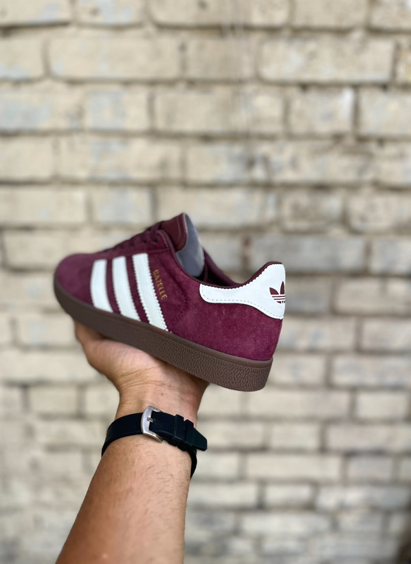 کتونی آدیداس گازل (Adidas Gazelle) زرشکی، طراحی کلاسیک و شیک با رویه جیر، مناسب برای استایل روزمره و کژوال. راحتی و دوام بالا، گزینهای ایدهآل برای استایل خاص شما!