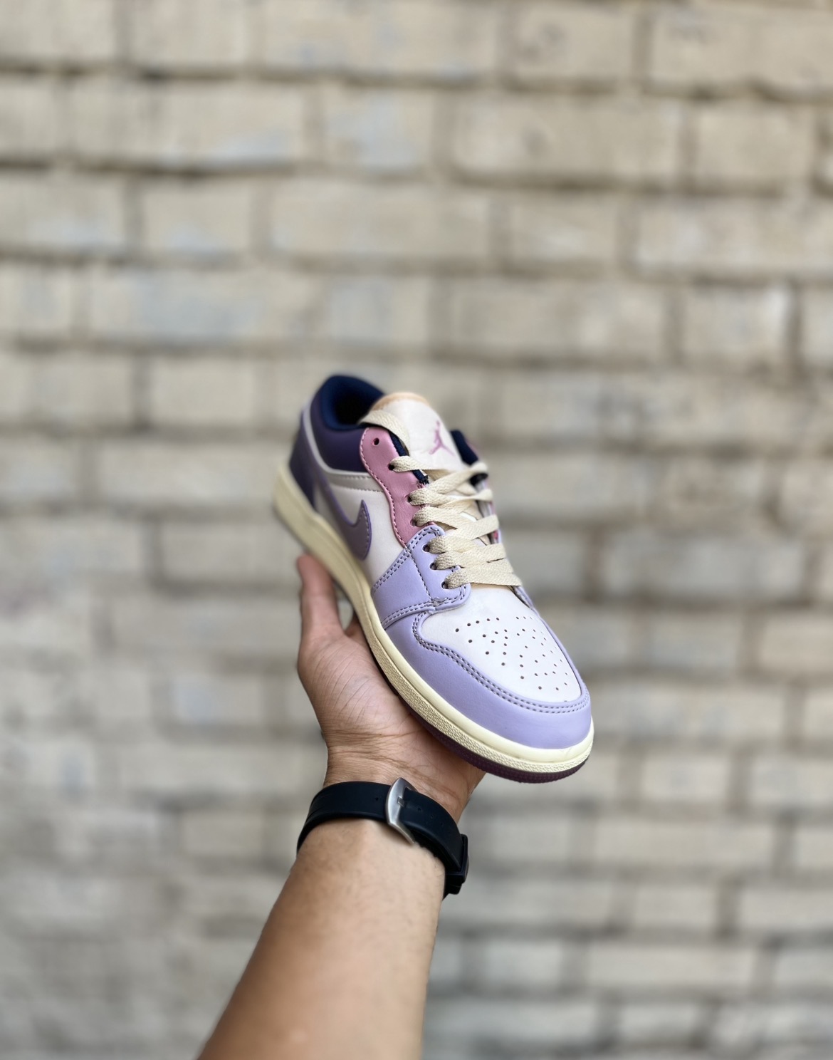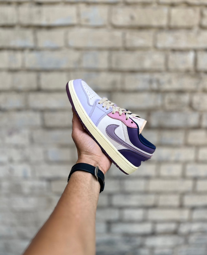 کتونی جردن وان لو با ترکیب رنگهای خاص یاسی، صورتی، سبز آبی و خاکستری، یکی از جذابترین مدلهای این سریه.