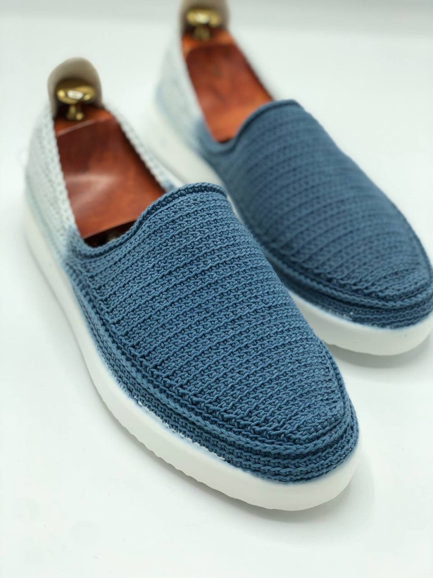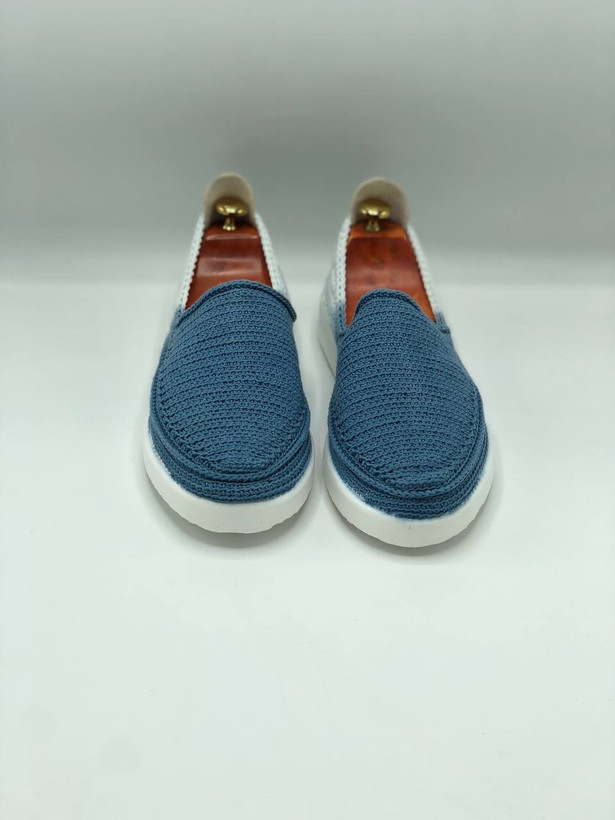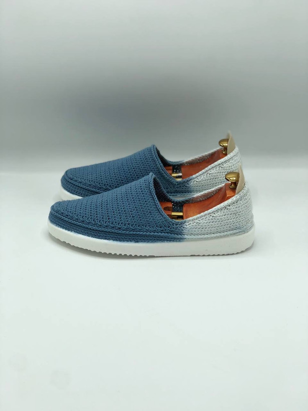 گیوه مردانه دو رنگ آبی و سفید با زیره پیو و کفی چرمی،مناسب پیادهروی روزمره