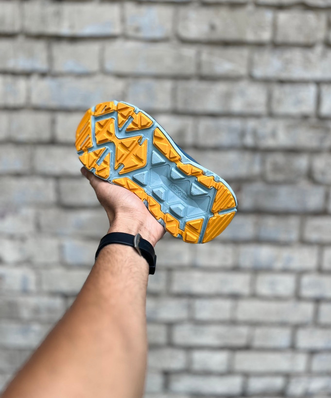 کتونی زنانه هوکا مدل Stinson ATR6 سرمهای با زیره آبی و لوگوی صورتی مسترکوالیتی