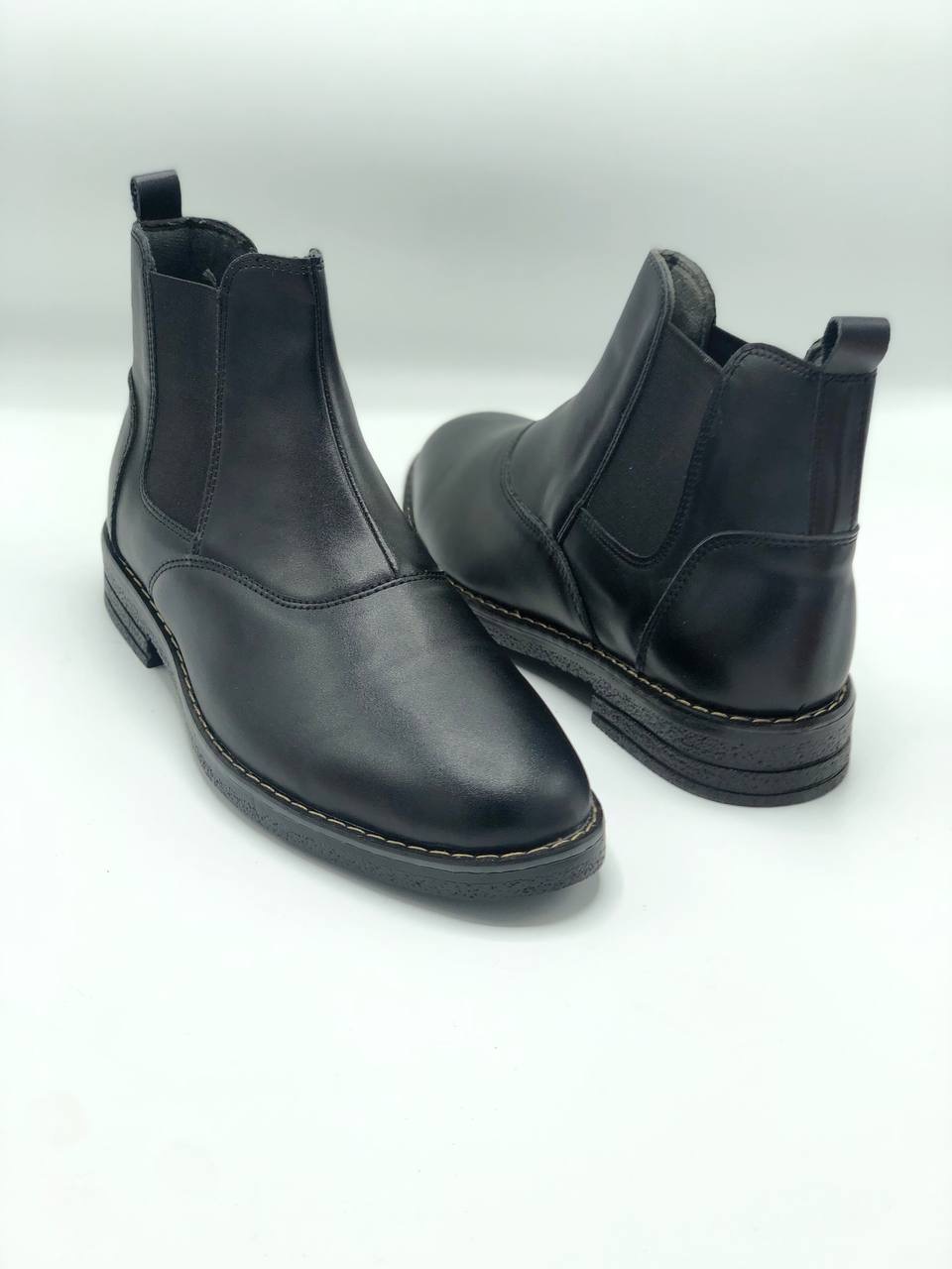 نمای جانبی نیم بوت مردانه چلسی چرمی با کش دوطرفه